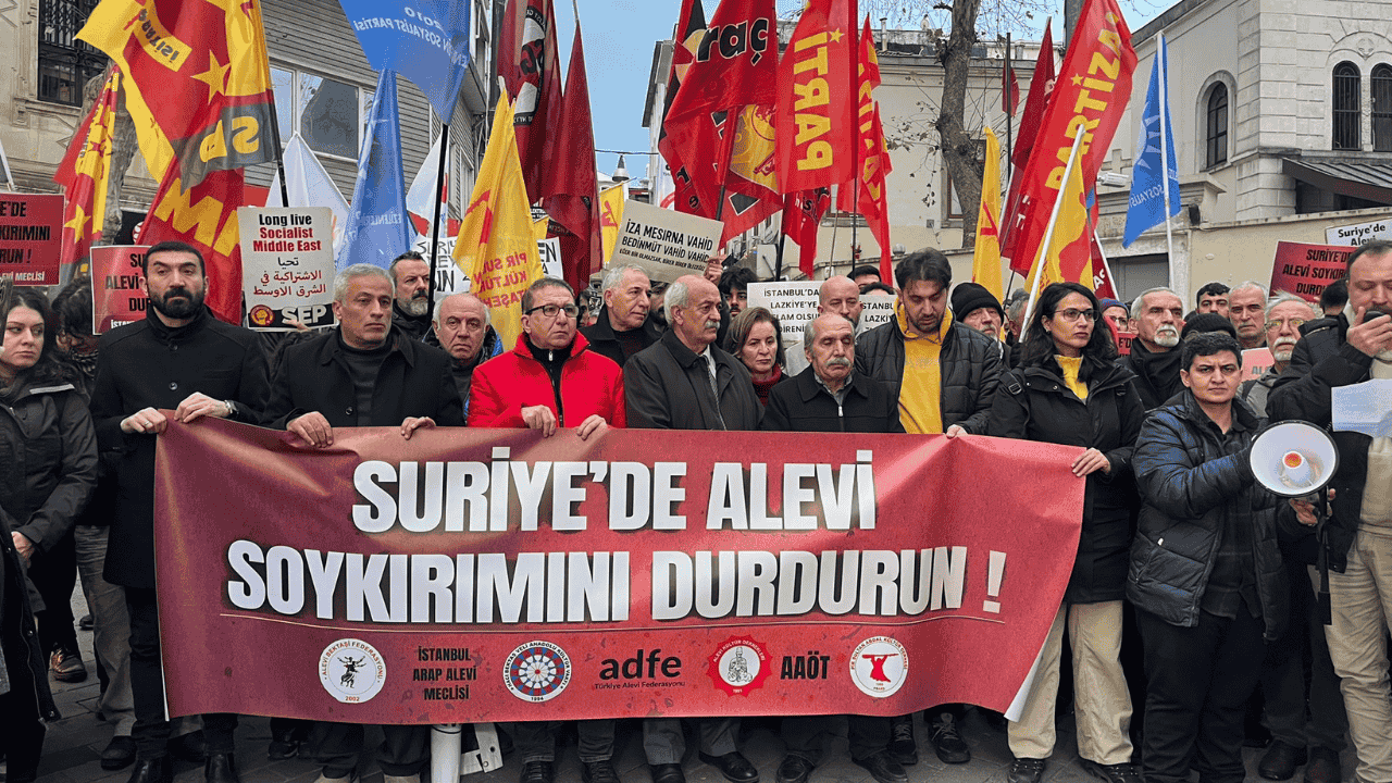 Suriye’de Alevi halkına yönelik saldırılar Kadıköy’de düzenlenen basın açıklamasıyla protesto edildi. Alevi Bektaşi Federasyonu Genel Başkan Yardımcısı Aydın Deniz, uluslararası kamuoyunu sorumluluk almaya çağırarak “Özellikle 6–8 Mart 2025 tarihlerinde yoğunlaşan saldırılar, uluslararası hukukun tanımladığı biçimiyle açık bir soykırım girişimidir. Bugüne kadar edindiğimiz bilgilere göre 15 bini aşkın Alevi, cihatçı selefi HTŞ çeteleri tarafından katledilmiştir. Köyler basılmış, toplu katliamlar yapılmış, kadınlar kaçırılmış, insanlar toplu mezarlara atılmıştır” dedi.
