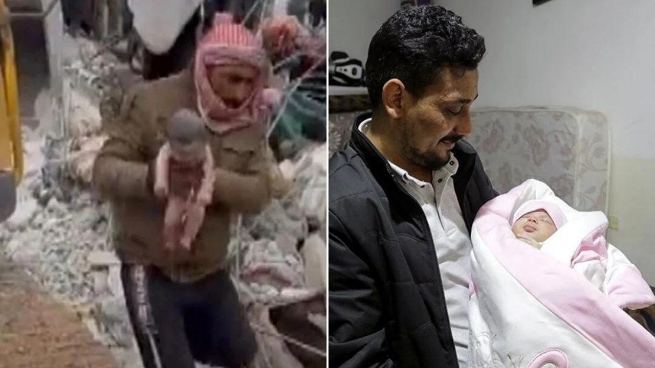 Suriye’deki depremde yıkılan bir binanın enkazı altında dünyaya gelen ve ailenin hayatta kalan tek üyesi olan çocuğu, teyzesi ve amcası evlat edindi.