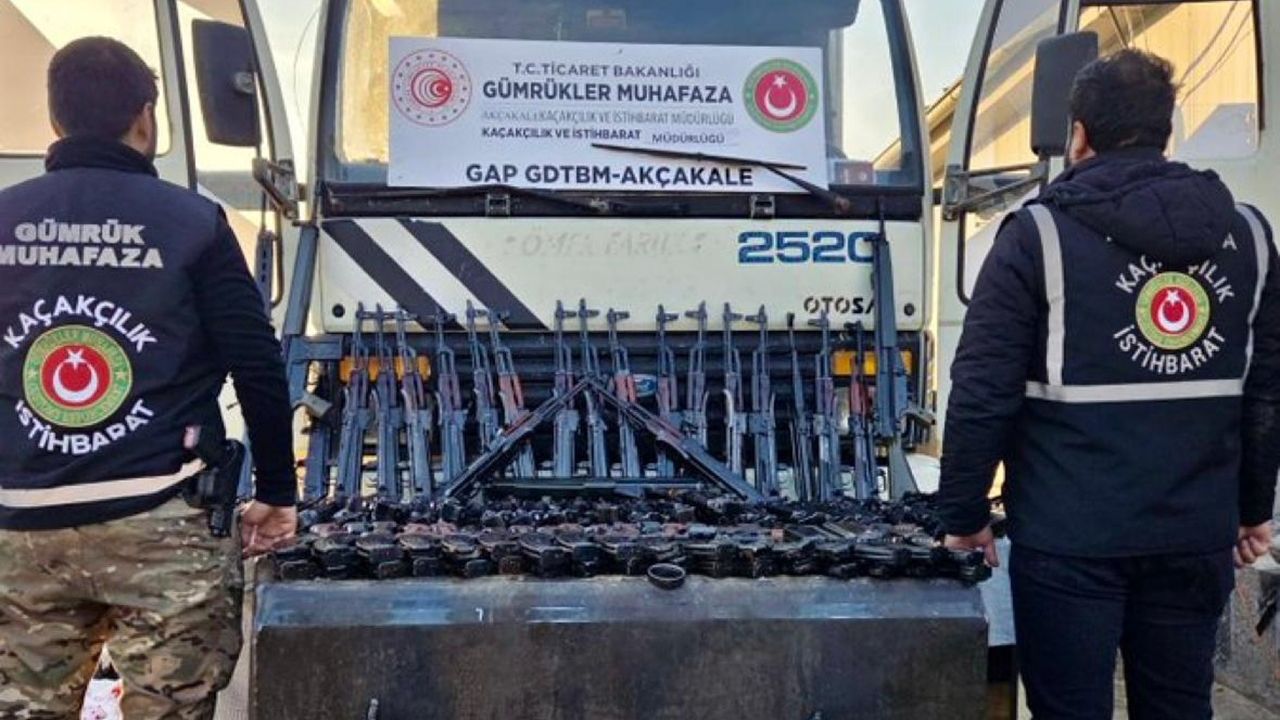 Kaymakamlıktan yapılan açıklamada, gümrük ekiplerince durdurulan kamyonun yakıt deposunda 51 uzun namlulu silah ile 41 şarjör ele geçirildiği belirtildi. Akçakale Gümrük Muhafaza Kaçakçılık ve İstihbarat Müdürlüğü ekiplerinin gerçekleştirdiği detaylı arama sonucunda kamyon sürücüsü A.B.’nin gözaltına alındığı kaydedildi.