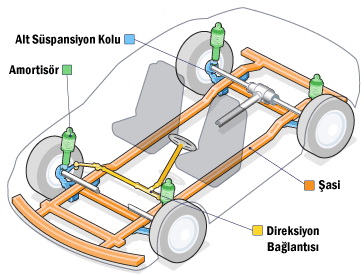 Tekerlekleri araca bağlayan tüm sistemlere “süspansiyon sistemleri” denir. Ön tekerleklerin araca bağlantısını sağlayan sisteme ön süspansiyon, arka tekerleklerin araca bağlantısını sağlayan sisteme de arka süspansiyon denir. Süspansiyon sistemi, virajlarda yanal kuvvetlerin etkisi altında tekerleklerin yolda sürekli düz durmasını ve yol yüzeyindeki girinti ve tümseklerin neden olduğu yanal titreşimlerin en aza indirilmesini sağlar.