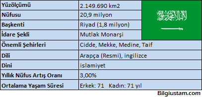 Yüzölçümü bakımından Orta Doğu’nun en büyük ülkesidir. Ürdün, Irak, Birleşik Arap Emirlikleri, Umman ve Yemen ile sınır komşusudur. Kızıldeniz ve Basra Körfezi’ne kıyısı vardır.