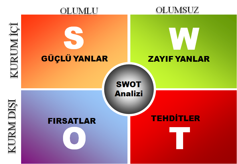 Adını Güçlü Yönler (Güçlü Yönler), Zayıf Yönler (Zayıf Yönler), Fırsat (Fırsatlar) ve Therats (Tehditler) kelimelerinin baş harflerinden alan bu analiz, şirketler, kuruluşlar ve bireyler için önemli ve stratejik bir değerlendirme analizidir.