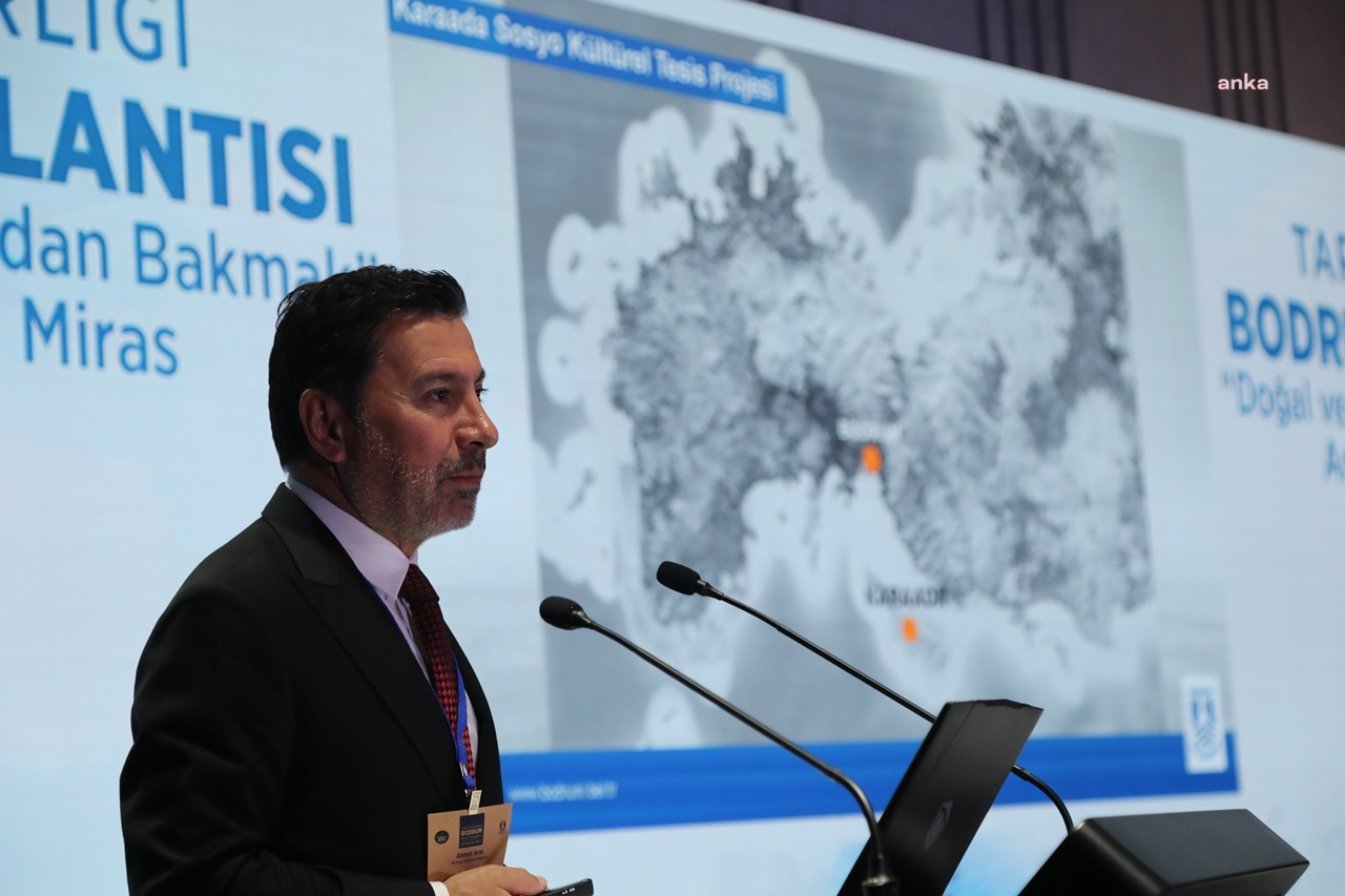 Açılış konuşmasının ardından Bodrum Belediyesi’nin kentte tarihi ve kültürel değerlerin korunması için uyguladığı ve planladığı projelere ilişkin bir sunum yaptı.