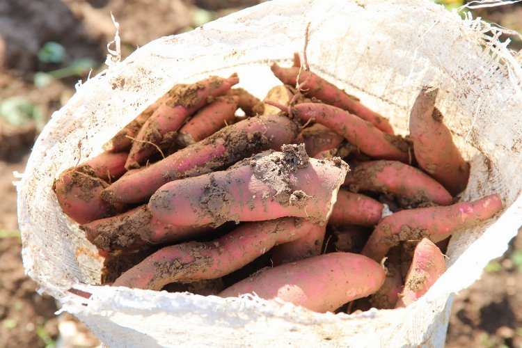 Hatay Büyükşehir Belediyesi tarafından kırsal kalkınma projesi kapsamında 1.500 aileye dağıtılan 1000 dönüm tatlı patates fidanı hasat edildi.