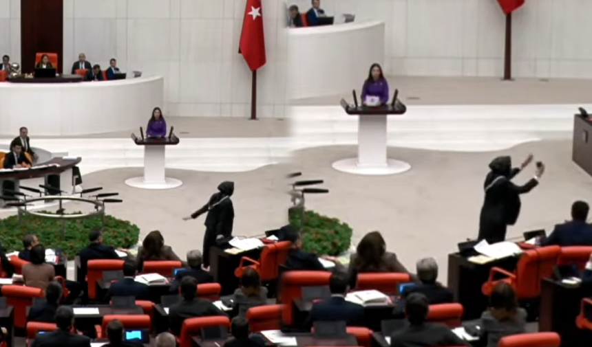 AKP Grup Başkanvekili Özlem Zengin öncülüğündeki AKP’li vekiller, CHP Milletvekili Gizem Özcan’ın konuşması bitince geri dönerek kürsüde toplandı.