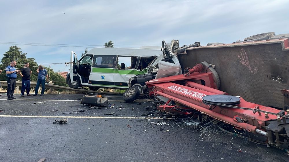 Tekirdağ’ın Marmara Iraklısı ilçesinde vincin minibüse çarpması sonucu 12 kişi yaralandı.