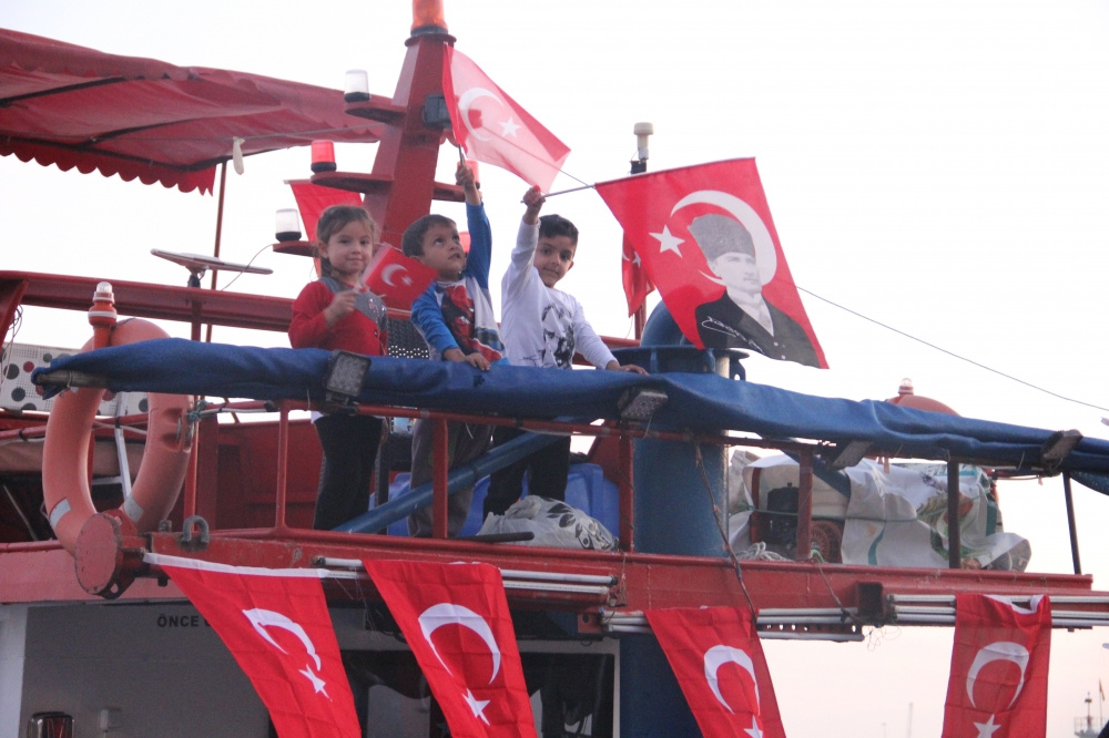 TEKİRDAĞ (AA) – Tekirdağlı balıkçılar, Cumhuriyet’in kuruluşunun 100. yıl dönümü ve 29 Ekim Cumhuriyet Bayramı dolayısıyla denizde tur attı.