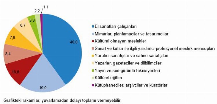 2021 yılı için kültürel istihdamın meslek alanlarına göre dağılımı (%) şöyle oldu: 15+ yaş