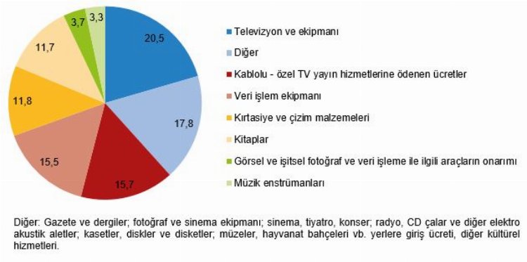 Hanehalkı kültürel harcamalarının yüzde 20,5’i televizyon ve ekipman alımına harcandı.