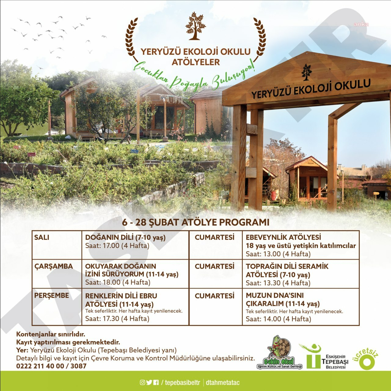 Tepebaşı Belediyesi ve Sakin Okul Eğitim Kültür Sanat Derneği iş birliğinde yeniden canlandırılan Yeryüzü Ekoloji Okulu’nda atölyeler şubat ayında ücretsiz yapılacak.