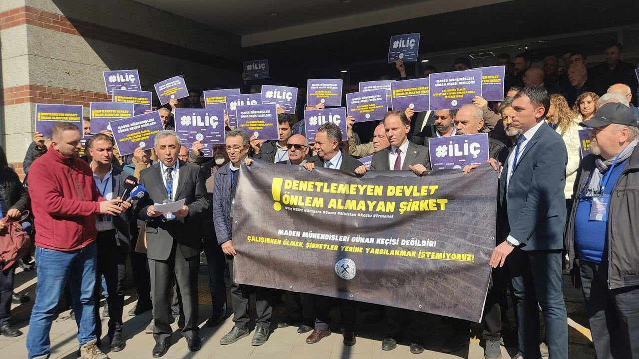 TMMOB Maden Mühendisleri Odası 49. Olağan Genel Kurulu Delegeleri Ankara Kocatepe Kültür Merkezi önünde basın açıklaması düzenledi.