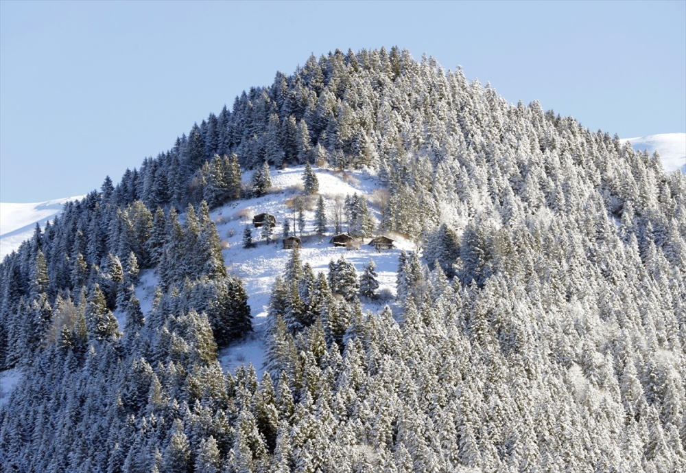 Öte yandan, Uzungöl ve çevresindeki karla kaplı ormanlar dronla görüntülendi.