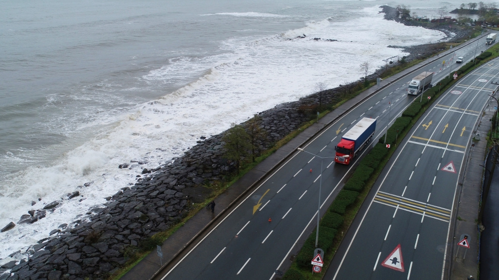 Trabzon’da denizde etkili olan fırtınanın oluşturduğu dev dalgalar, Karadeniz Sahil Yolu’nda ulaşımda aksaklıklara neden oluyor.