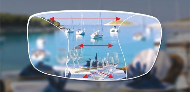 • Düz üst trifokal lens: Yakın ve orta görüş bölümleri, iyi çevresel görüş sağlayan bir D şekline uygundur. Lensin tamamına ulaşmaz ve insanların alışması kolaydır.
