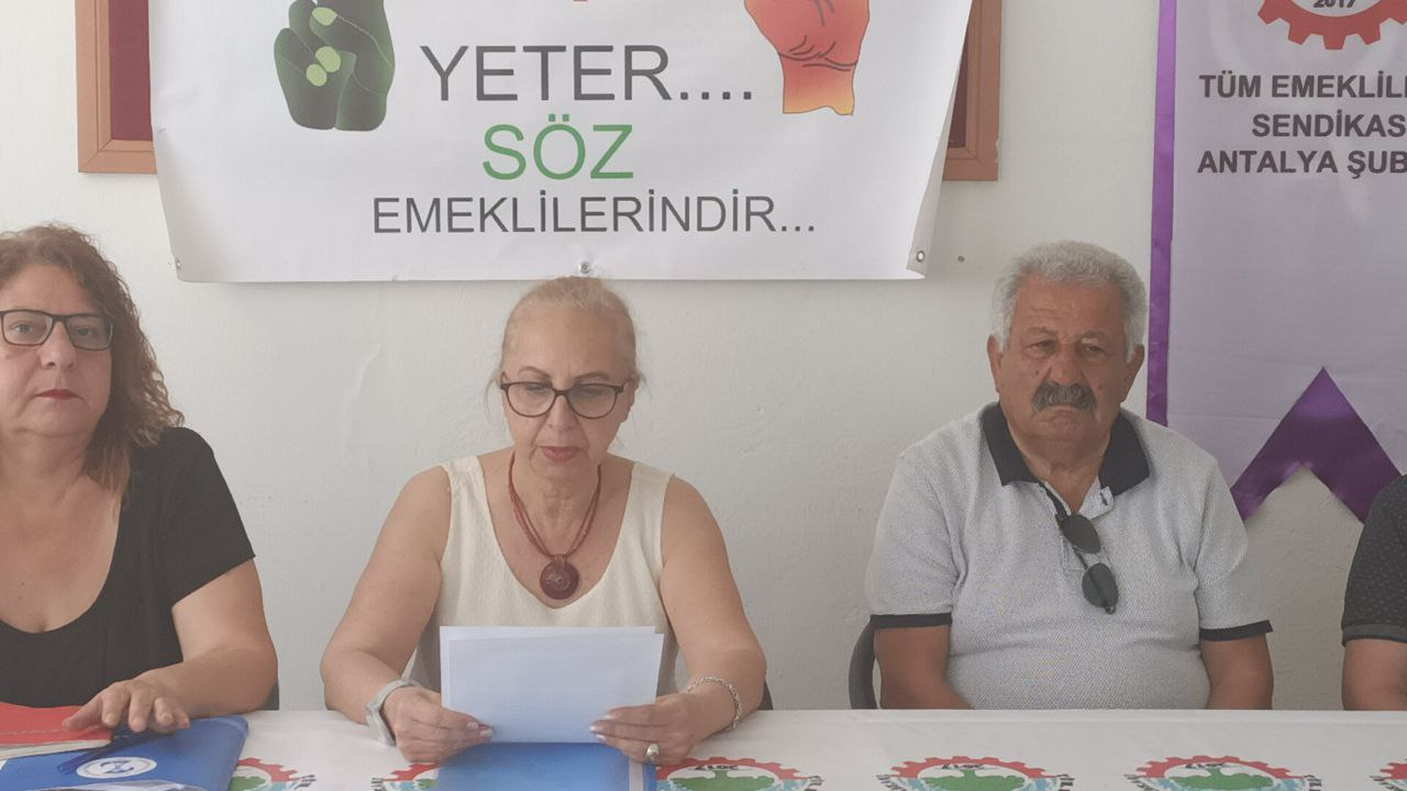 Antalya Emekliler Sendikası Sekreteri Farzan Sarsılmaz, şube binasında basın toplantısı düzenledi.