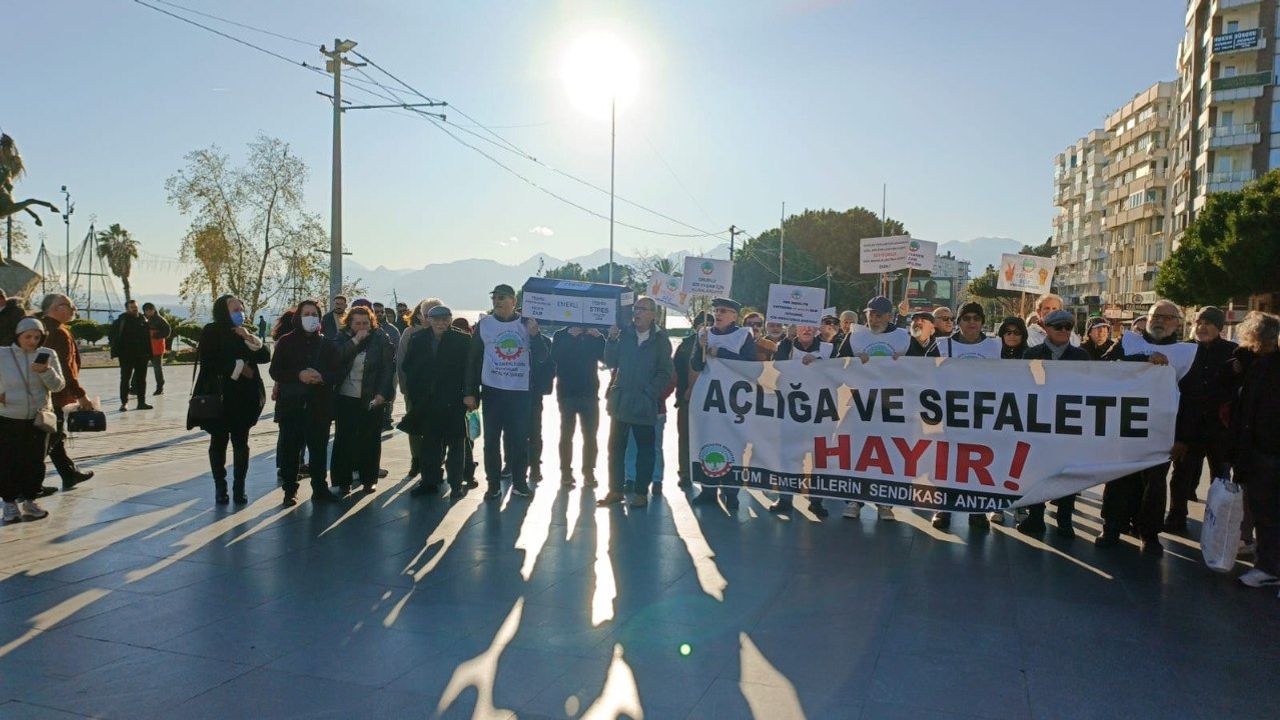 Tüm Emeklilerin Sendikası Antalya Şubesi, Cumhuriyet Meydanı’nda oturma eylemi ve basın açıklaması gerçekleştirdi. Açıklamayı Şube Yönetim Kurulu Üyesi Ferzan Sarsılmaz okudu.