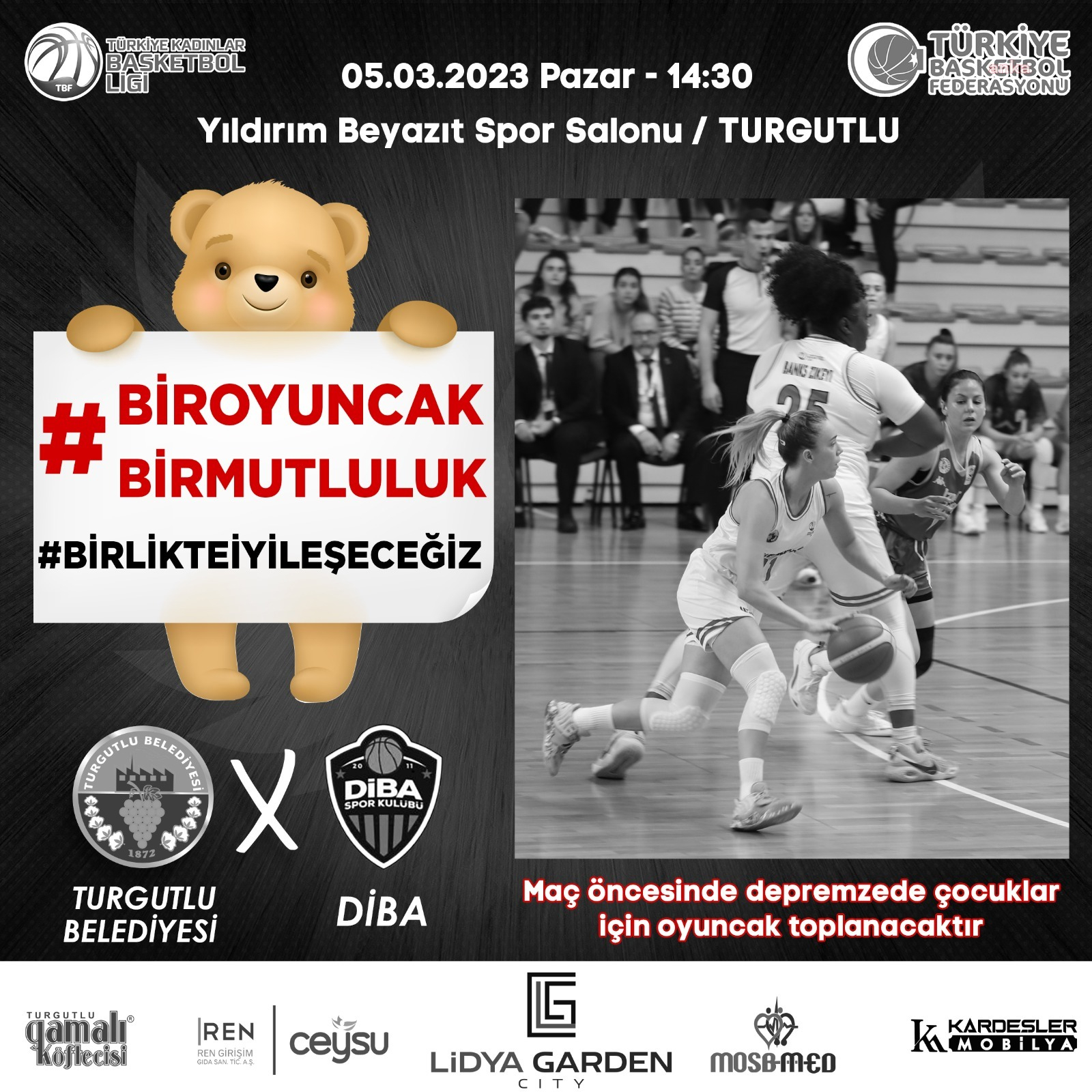 Türkiye Kadınlar Basketbol Ligi’ne (TKBL) verilen bir aylık ara, 6 Şubat’ta Kahramanmaraş’ta meydana gelen deprem nedeniyle sona erdi. 5 Mart Pazar günü saat 14.30’da başlayacak karşılaşmayı Yıldırım Beyazıt Spor Salonu’nda Turgutlu Belediyesi Bayan Basketbol Takımı ev sahipliği yapacak. Depremden etkilenen ve şehre gelen depremzedeler için yardım çalışmalarını sürdüren Turgutlu Belediyesi, belediye kadın basketbol takımının TKBL’de 23. hafta oynanacak maçı öncesi seferberlik başlattı. Kampanya kapsamında taraftarların maç öncesi getirdikleri oyuncaklar, Turgutlu Belediyesi çalışanları tarafından depremzedelere teslim edilecek.