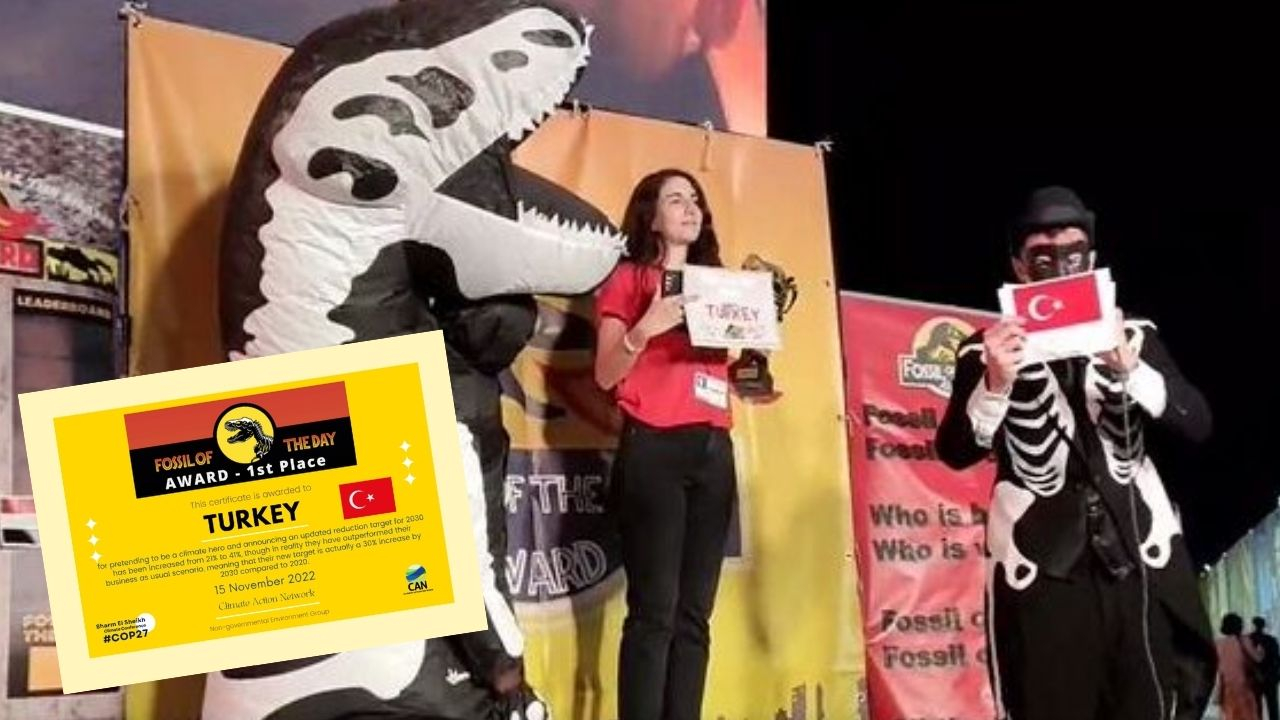 BM’nin Mısır’da ikinci haftasında düzenlenen COP27 iklim zirvesinde iklim aktivistleri tarafından verilen geleneksel “Günün Fosili” ödülü 15 Kasım’da Türkiye’ye verildi.