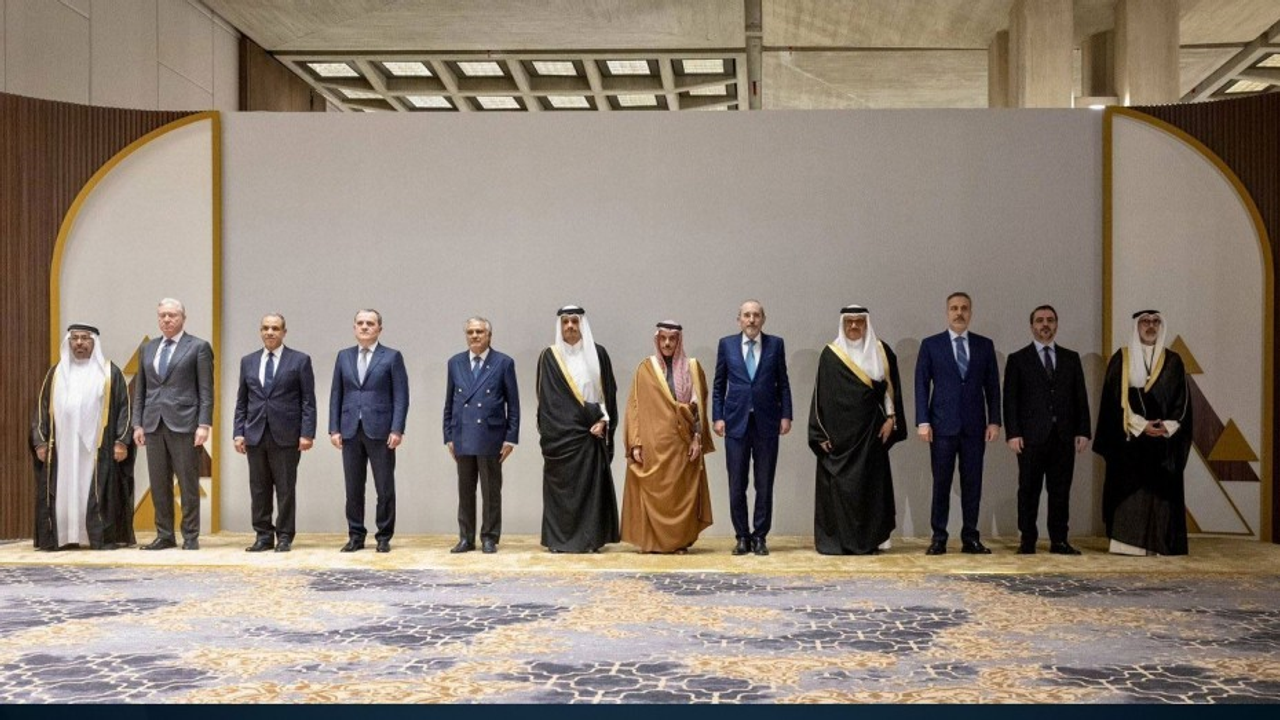 Suudi Arabistan’ın başkenti Riyad’da düzenlenen istişare toplantısında Türkiye, Suriye, Azerbaycan, Bahreyn, Mısır, Ürdün, Kuveyt, Lübnan, Pakistan, Katar, Suudi Arabistan ve Birleşik Arap Emirlikleri (BAE) dışişleri bakanları bir araya geldi.