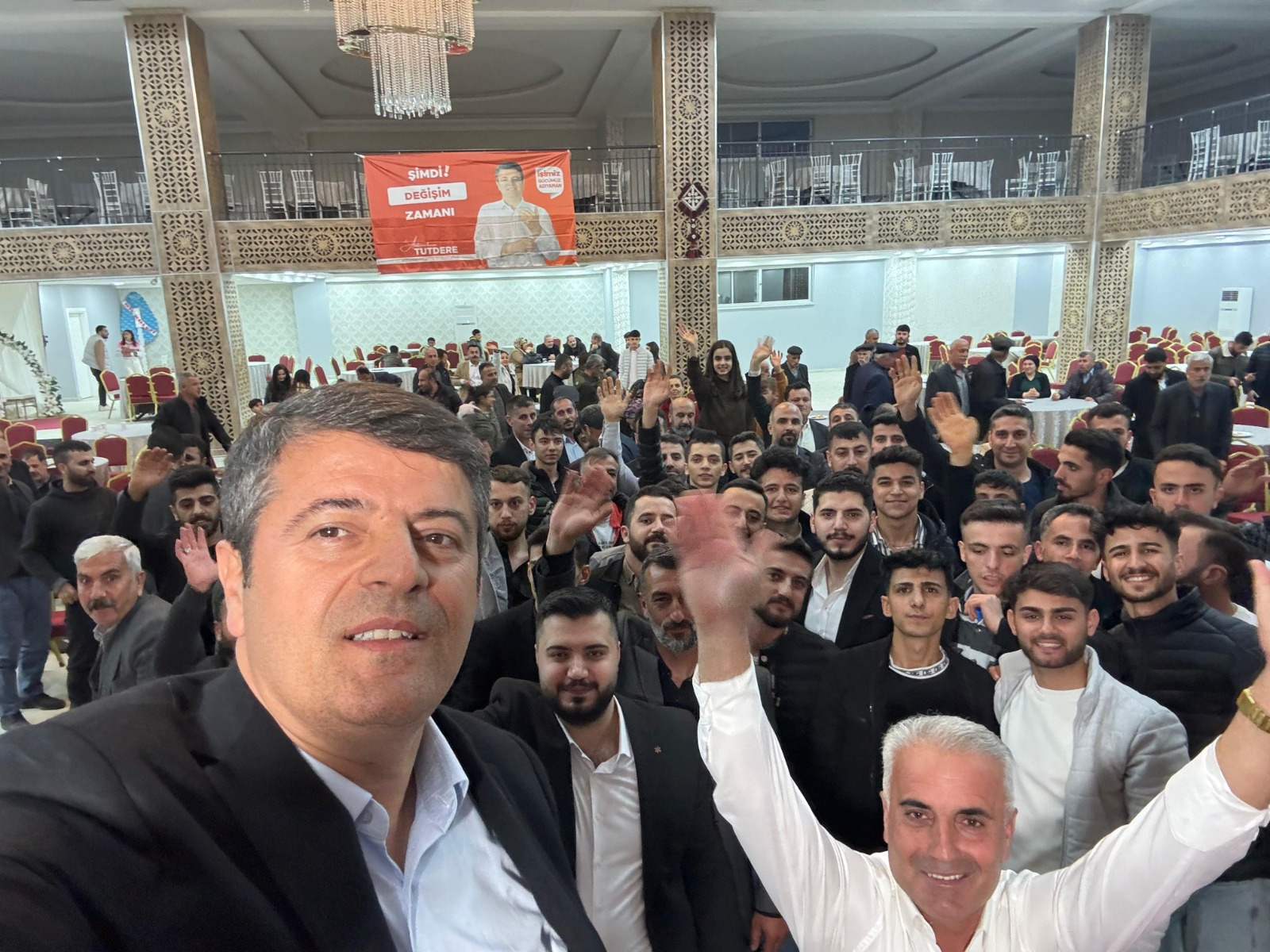 Belediye Başkan Adayı kentte bir düğün salonunda gençlerle bir araya geldi. Büyük bir coşku ve sevgi seliyle karşılanan Tutdere, “Tutdere Başkan” sloganlarıyla salona girdi.