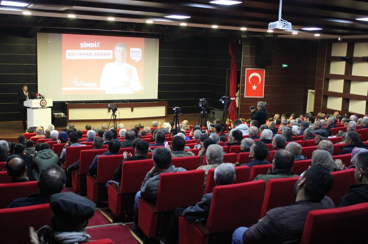 “Başkan Tutdere” sloganlarıyla kürsüye çıkan Tutdere, hazırladıkları projelerle, doğumdan yaşlılığa kadar Adıyamanlı hemşehrilerinin yanında olacaklarını söyledi.