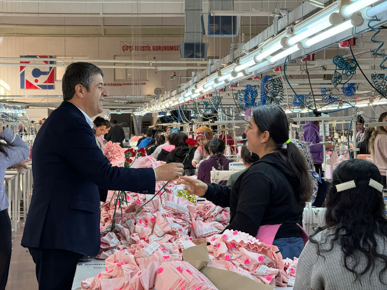 Tutdere, 8 Mart Dünya Emekçiler Günü kapsamında, Organize Sanayi Bölgesinde çalışan kadın tekstil emekçilerini, Halk Eğitimdeki usta öğreticilerini ve kadın esnafları ziyaret etti.