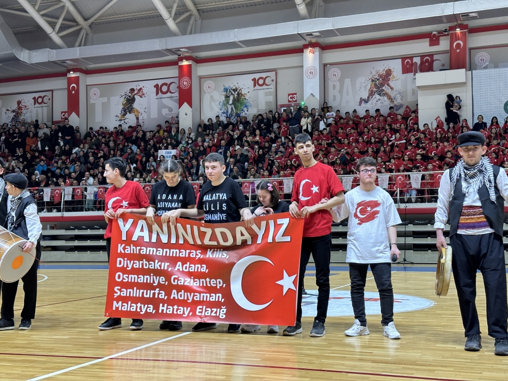 Hüseyin Akbaş Spor Salonu’nda gerçekleştirilen törende ilk ve ortaokul öğrencileri sahne aldı.