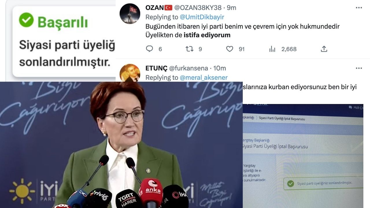 İYİ Parti Genel Başkanı Meral Akşener’in açıklamasının ardından İYİ parti üyeliğinden istifalar başladı. İYİ Parti üyeleri sosyal medyadan yaptıkları paylaşımlarla partiden istifa ettiklerini duyurdu. Bunlardan bazıları