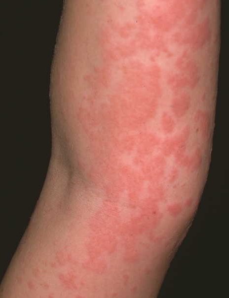 Çapı 30 cm’ye ulaşan, ortasında kızarıklık, ortasında solukluk olan, düzensiz, kaşıntılı bir döküntüdür. Deriden hafifçe kaldırılır. Ezilerek yok olur.