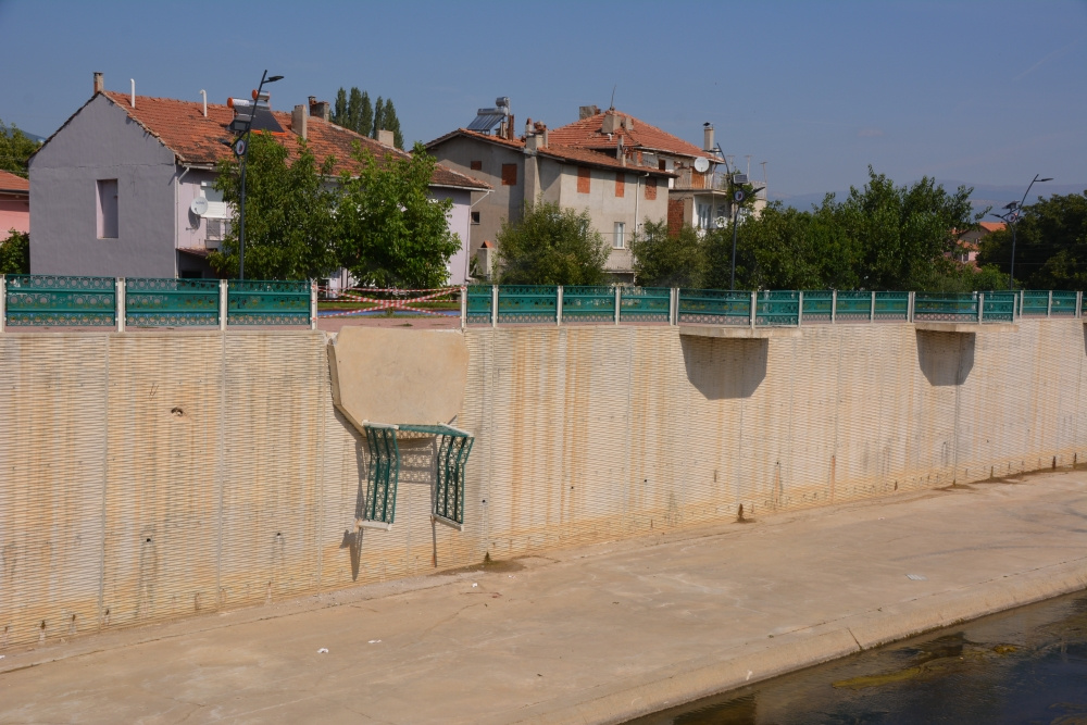 Öte yandan çay üzerinde bulunan diğer seyir balkonları, Banaz Belediyesi ekiplerince şeritle kapatıldı. (AA)