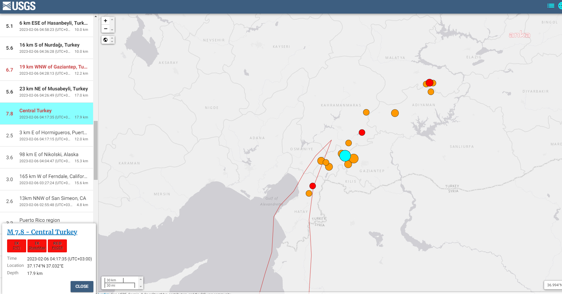 Kahramanmaraş’ın Pazargıç ilçesinde 7.4 büyüklüğünde deprem meydana geldi. Çok sayıda artçı sarsıntı devam ediyor. Afet ve Acil Durum Dairesi’nin verilerine göre 76 vatandaş hayatını kaybetti, 440 vatandaş da yaralandı. Amerika Birleşik Devletleri Jeoloji Araştırması (USGS), depremin 7.8 büyüklüğünde olduğunu belirledi.
