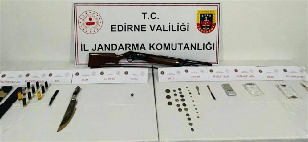 Edirne Jandarma Komutanlığı uyuşturucu ticaretini önlemek amacıyla baskın yaptığı evde uyuşturucunun yanı sıra tarihi eser olduğu değerlendirilen objeler ele geçirildi.