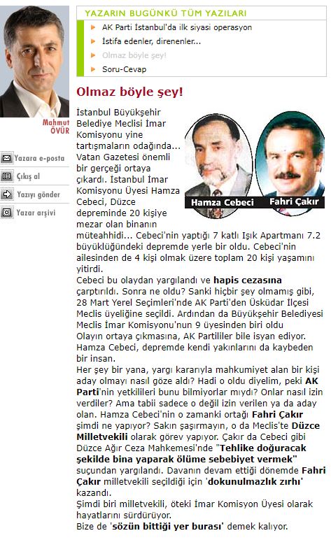 1999 Yerel Haberler depreminde Işık’ın 7 katlı apartmanı yıkıldı. Binada 20 kişi öldü. Apartman müteahhidi Hamza Jabiji ve ortağı Fahri Choucair yargılandı ve hapis cezasına çarptırıldı. 3 kat yerine 7 kat yapan Cebeci, “Ben müteahhitim. Arsada çalışıyorum. 3 kat yapacağım dersem iş yapamam” dedi. Ancak bu depremden kısa bir süre sonra Cebeci, 2004 yılında AKP’den Üsküdar İlçe Meclis üyeliğine seçildi. Kısa bir süre sonra İstanbul Belediye Meclisi İmar Komisyonu üyelerinden biri oldu. AKP’nin kuruluş döneminde Yerel Haberler Kaymakamı olarak görev yapan Sepeci, 2015’te Darülaceze’nin Cumhurbaşkanı oldu. 8 Mayıs 2020’de Cumhurbaşkanı Recep Tayyip Erdoğan tarafından Cumhurbaşkanlığı danışmanı olarak atandı. Cebeci şu anda Darulaz Dil Kürsüsü’nü yürütmektedir. Vakıf Yönetim Kurulu’nda Aile ve Sosyal Hizmetler Bakanı Derya Yanık, Cumhurbaşkanı Erdoğan’ın oğlu Bilal Erdoğan, Sultan II. Abdülhamid’in dördüncü nesil torunu Abdülhamid Kayhan Osmanoğlu ve aday Fuat Kolaçoğlu yer alıyor. Adalet ve Kalkınma Partisi’nden milletvekilliği almak için yerinizi alın.