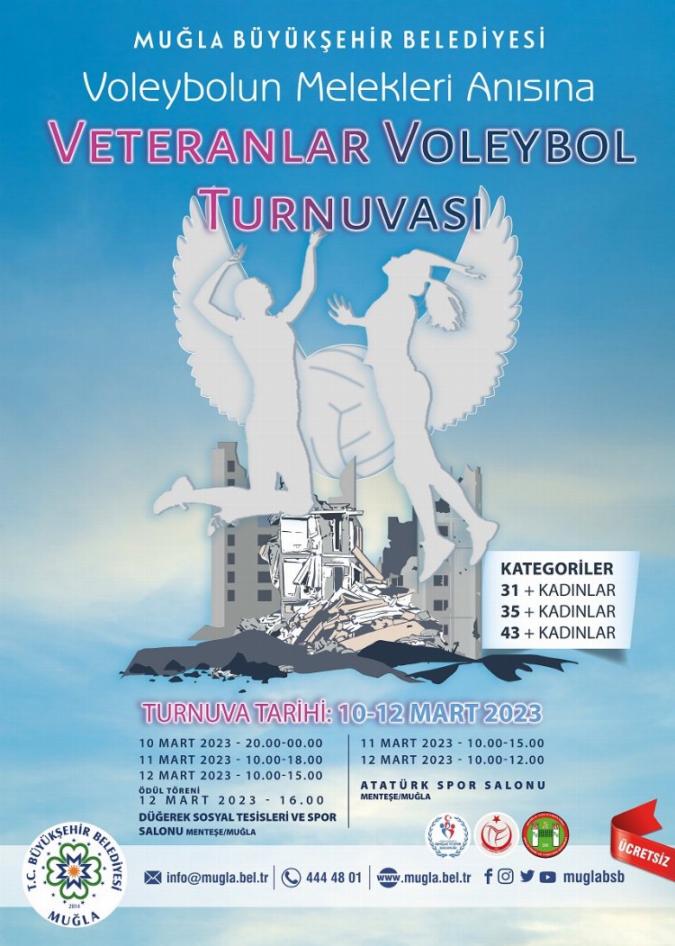 Muğla Belediyesi tarafından düzenlenen Voleybol Melekleri Anısına Gaziler Voleybol Turnuvası 10 Mart 2023 tarihinde başlayacak ve 12 Mart’ta yapılacak ödül töreni ile sona erecek.