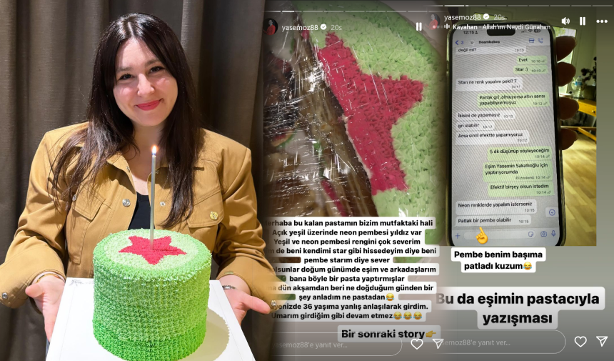 Yeni yaşını kutlayan Sakallıoğlu, Instagram hesabından doğum günü pastasını paylaştı. Sevdiği renklerin bir karışımı için eşinin hazırlattığı pasta yanlış anlaşıldı. İktidara yakın şahıslar, YPG bayrağı olduğunu iddia edip Sakallıoğlu’na tepki gösterdi.