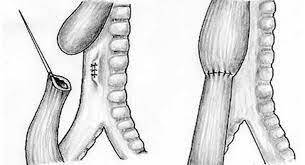 Mevcut uygulamada, açık torakotomi yerine video yardımlı torakoskopi kullanan minimal invaziv bir yaklaşım tercih edilmektedir. Açık yöntem kullanılırsa, anterior pektoralis ve latissimus dorsi kasları korunarak dördüncü interkostal aralıkta sağ lateral posterior torasik insizyon yapılır. Ekstradural diseksiyon, azigos veni ile karşılaşılıncaya kadar devam eder ve ardından kesilir. Tip A durumunda, alt özofagus kisti ve ilişkili fistül belirlenir ve eksize edilir. Proksimal özofagus kesesi daha sonra iki uç arasında gerilimsiz süreklilik sağlamak için mobilize edilir. Yakınlarda fistül varsa doldurulmadan önce bağlanır. Yemek borusu, tek katmanlı bir uç uca anastomoz yoluyla yeniden yapılandırılır. Göğse bir tüp yerleştirilir ve postoperatif özofagogram anastomozun açıklığını doğrulayana kadar kalır. Anastomoz kaçakları müdahaleye gerek kalmadan iyileşme eğilimindedir ve hasta devam eden göğüs tüpü ve antibiyotik tedavisi ile kontrol altına alınır.