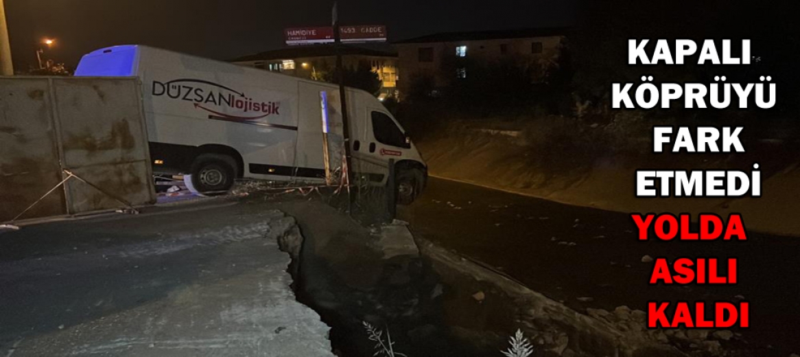 Kaza, Hamidiye Mahallesi’nde meydana geldi. Alınan bilgiye göre, yenileme çalışmaları kapsamında Karaca Çayı üzerindeki araba köprüsü yıkıldı. Yıkılan köprü çevresinde eylem yaparken, MP yönetimindeki 34 EOU 922 Citröen minibüsü, sürücünün direksiyon hakimiyetini kaybetmesi üzerine dereye uçtu. Barikatları kıran kamyon yolda asılı kaldı. Kazaya tanık olan vatandaşların yardımıyla otobüsten indirilen sürücü, kazayı yara almadan atlatırken, minibüs çekici ile bulunduğu yerden kaldırıldı.