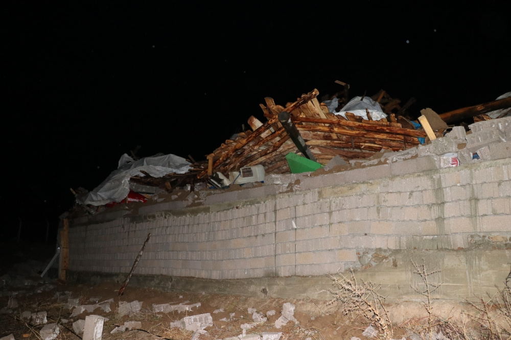 Şiddetli rüzgar merkeze bağlı Lök köyünde Bekir Özdemir’e ait mandıra, garaj, depo ve samanlığın bulunduğu 500 metrekarelik binanın çatısını uçurdu, duvarlarını yıktı. Garajda bulunan traktör ve tarım aletleri zarar gördü.