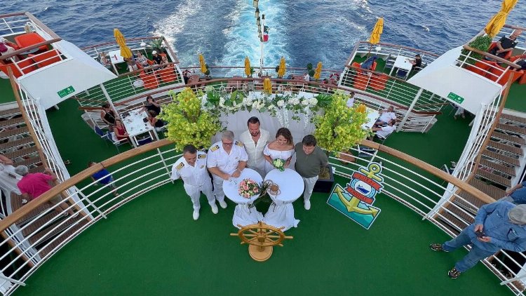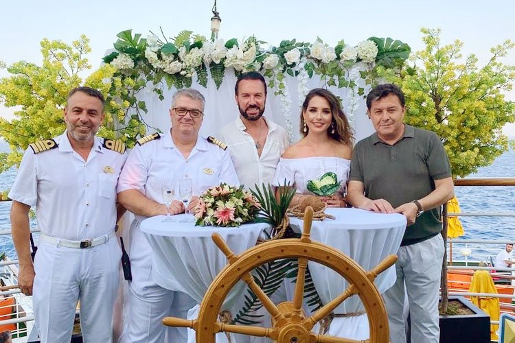 Öğrencisi Miraş Sinemtekin ile Yunanistan’ın dünyaca ünlü aşk adası Santorini’de rüya gibi bir törenle evlenen çağdaşı, beni Yunanistan’dan arayıp deliler gibi aşkını dile getirdi. Türkiye’nin ilk ve tek yolcu gemisi Miray Cruises, armatör Vedat Oğurlu’nun tanıklık ettiği Yunan kaptan Charilos Petridis ile Türkiye’nin en unutulmaz halk müziği yorumcularından Nikla Akbin’in çok mutlu nikah masasına oturmasıyla mutluluğa yükseldi. Romantik parti. Onlara mutlu bir yaşam diliyorum.” Cümleler kullanın.