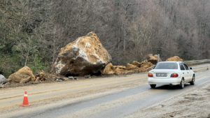 Zonguldak-Ankara kara yolunun 10. kilometresinde dün yaşanan toprak kayması nedeniyle yola düşen büyük kaya parçaları ve toprak yığınının kaldırılması için Karayolları ekiplerince çalışma başlatıldı. Yolun Ankara istikametindeki büyük kaya parçaları ve toprak yığını iş makinelerinin yardımıyla kaldırıldı. Polis ekiplerinin güvenlik önlemi aldığı kara yolunda ulaşım tek şeritten çift yönlü olarak kontrollü şekilde sağlanıyor. Güzergahta seyir …