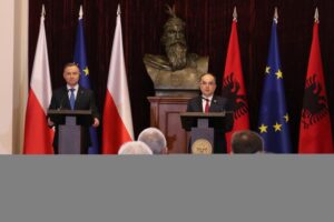 Duda, başkent Tiran’daki temasları kapsamında Arnavutluk Cumhurbaşkanı Bagram Bijaj tarafından resmi törenle karşılandı. Arnavutluk Cumhurbaşkanlığı’ndaki törenin ardından günün 24 saati bir araya gelen Bijaj ve Duda, iki heyet arasındaki görüşmenin ardından ortak basın toplantısı düzenledi. Polonya Cumhurbaşkanı Duda, burada yaptığı açıklamada, Rus-Ukrayna savaşına değinerek, Arnavut makamlarına Ukrayna’ya verdikleri destekten dolayı teşekkür etti. Duda, “Bir ulusun …