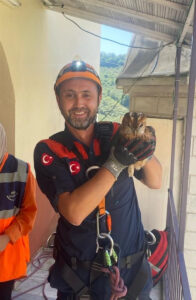 Giresun’da, minarede mahsur kalan yavru baykuş kurtarıldı
