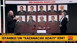 Sonar Araştırma kurucusu Hakan Bayrakçı, İstanbul seçimlerine ilişkin değerlendirmelerde bulundu. CNN Türk’te katıldığı yayında Bayrakçı,”Son bir ayı periyodik, 10’ar günlük aralıklarla söyleyeyim. Bugünkü günümüz için yorumu da yapalım. 1.5 – 2 ay önceydi… İmamoğlu çok yüksek bir puanla öndeydi. Adaylar belli olduktan sonra yapılan ilk anketlerde İmamoğlu 2-2.5 puan önde çıkıyordu. Fakat 15-20 gün önceki …