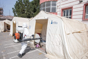 İzmir Büyükşehir Belediyesi’nin afete müdahale genel koordinasyonunu üstlendiği ve Büyükşehir Belediyesi’ne bağlı olan Osmaniye’de, İzmir Büyükşehir Belediye Başkanı Tunce Soyer tarafından “Gölge Belediyecilik” amacıyla kurulan Afet Koordinasyon Merkezi’nde çalışmalar sürüyor. İZBETON’a bağlı, kesintisiz devam. Bu ekipler gece gündüz çalışarak günde en az üç kez çadır alanında salgına karşı ilaçlama yapıyor ve depremzedelere günde üç öğün …