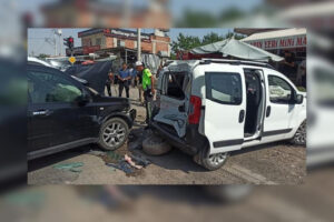 BİTLİS (AA) – Bitlis’in Tatvan ilçesinde panelvan, iki araca çarparak iş yerine girdi. Cumhuriyet Caddesi’nde Sinan İder idaresindeki 48 AHF 461 plakalı panelvan, park halindeki 13 AAP 126 plakalı panelvan ile 31 U 5873 plakalı otomobile çarptı. Çarpmanın etkisiyle savrulan panelvan, caddedeki iş yerine girdi. İhbar üzerine kaza yerine 112 Acil Sağlık ve polis ekipleri …