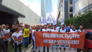 Haber: Fatoş Erdoğan İstanbul’un Esenyurt ilçesindeki Trendyol Express Dağıtım Merkezi’nde çalışırken sendikal faaliyetler gerekçe gösterilerek “küçülme” bahanesiyle  işten çıkarılan 54 kişi 28 Ağustos’ta işe iade talebiyle eyleme başladı. İşçilerin depo önünde başlattığı direniş iki haftadır devam ediyor. Trendyol Esenyurt Depo işçileri, bugün eylemlerini Maslak’ta bulunan Trendyol Genel Merkezi önüne taşıdı. Önce işkolları değiştirilen ve sendikada örgütlendikleri için …