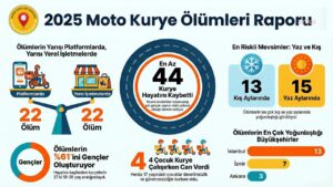 Kurye Hakları Derneği, hazırladığı “Moto Kurye Ölümleri Raporu – 2025” çalışmasını yayımlayarak geçen yıl hayatını kaybeden çalışanlara ilişkin verileri kamuoyuyla paylaştı. Rapora göre, 2025 yılında Türkiye genelinde en az 44 moto kurye, sipariş yetiştirmeye çalışırken iş cinayetlerinde hayatını kaybetti. Yaşamını yitiren kuryelerin yüzde 61’inin 18-28 yaş aralığındaki gençlerden oluştuğu, ölenler arasında sipariş yetiştirmeye çalışan 4 …