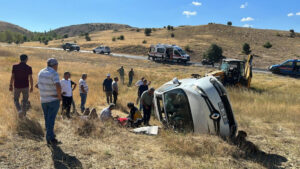 Sinop’ta işçileri taşıyan minibüs devrildi, 13 kişi yaralandı
