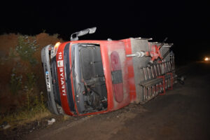 Ahmed Şakir’in kullandığı 67 EC 295 plakalı tır, Sinop-Buyabat karayolu üzerindeki Bektaş köyü mevkiinde yol kenarındaki ağaçlık alana devrildi. Olay yerine sağlık, güvenlik ve itfaiye ekipleri sevk edildi. İtfaiye ekipleri, bir saatlik çalışma sonucu otomobilde sıkışan sürücüyü çıkardı. Ağır yaralanan sürücü ile otomobilde bulunan Sammy Kaim, sağlık ekipleri tarafından Boyabat 75. Yale Devlet Hastanesine kaldırıldı. …