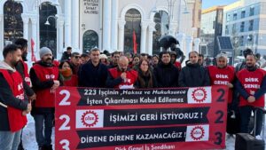 Van Büyükşehir Belediyesi’nde kayyum yönetimi tarafından işten çıkarılan 223 işçinin “işimizi geri alacağız” sloganıyla başlattığı protesto, 160’ıncı gününde zorlu kış şartları altında sürdü. Devrimci İşçi Sendikaları Konfederasyonu (DİSK) Genel-İş Van Şubesi Eş Başkanı Ömer Tekin, Van Sanat Sokağı’nda düzenlenen eylemde yaptığı açıklamada, hava koşullarının sertliğine rağmen ekmek davalarından ve haklılıklarından aldıkları güçle mücadeleye devam edeceklerini …
